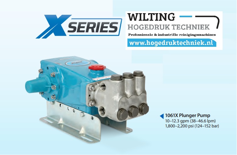 Deze triplex (drie plunjerstangen) verdringerpomp maakt deel uit van de Cat Pumps X-serie , ontworpen voor maximale levensduur in veeleisende toepassingen zoals omgekeerde osmose van zeewater (SWRO). Model 1061X is voorzien van een pompkop van roestvrij staal 316, massieve keramische plunjers en standaard NBR (Buna-N) lagedrukafdichtingen en O-ringen.